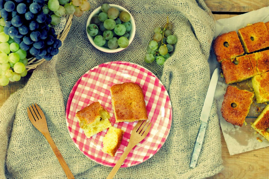 Durante la época de vendimia me regalaron unos cuantos racimos de uvas y aproveché para hacer este bizcocho que está tremendamente rico y no resulta nada seco. Aunque no se disponga de uvas de vendimia, podemos realizarlo igual sin nada o con trozos de cualquier otra fruta. El caso es que os animéis a hacer esta receta, que estoy segura, no os va a defraudar.