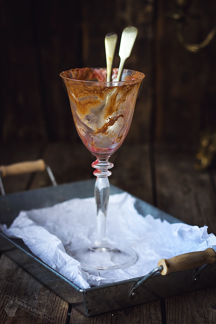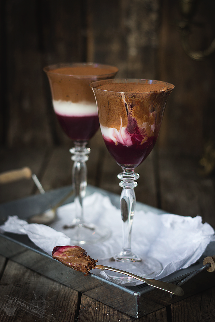 Estas copas estáaaaaaaaaaaaaaaaaan... De muerte!! La receta es una adaptación (muy adaptada) del libro "Chocolate" de Maxine Clark y aunque están pensadas para Halloween, cualquier época o día del año es ideal para disfrutar de esta delicia que además es muy facilita de hacer. La combinación de la mermelada, el yogur y la mousse de chocolate, resulta un espectáculo en el paladar. Probadlas y me contáis.